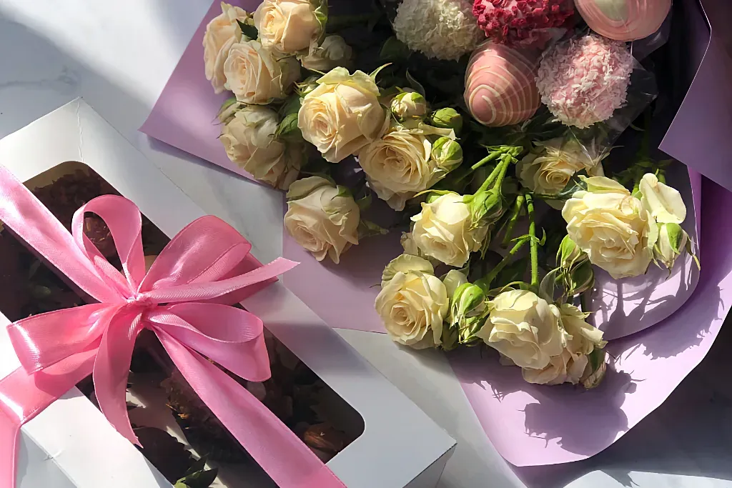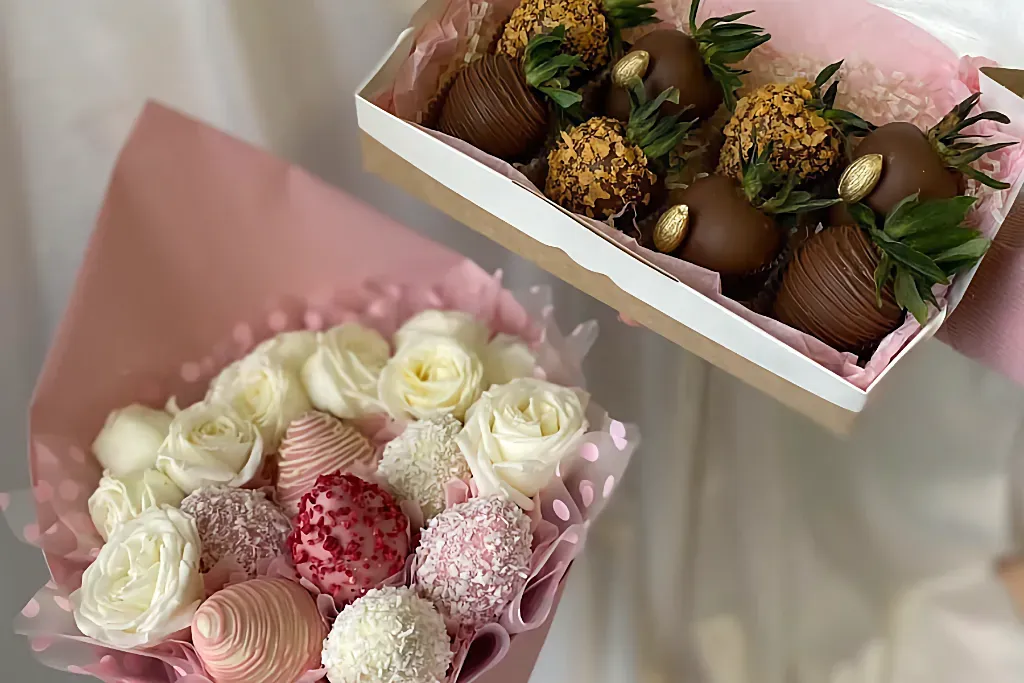 - Приятно удивить человека. Такое вкусное комбо – это отличная альтернатива привычному ансамблю из цветов.