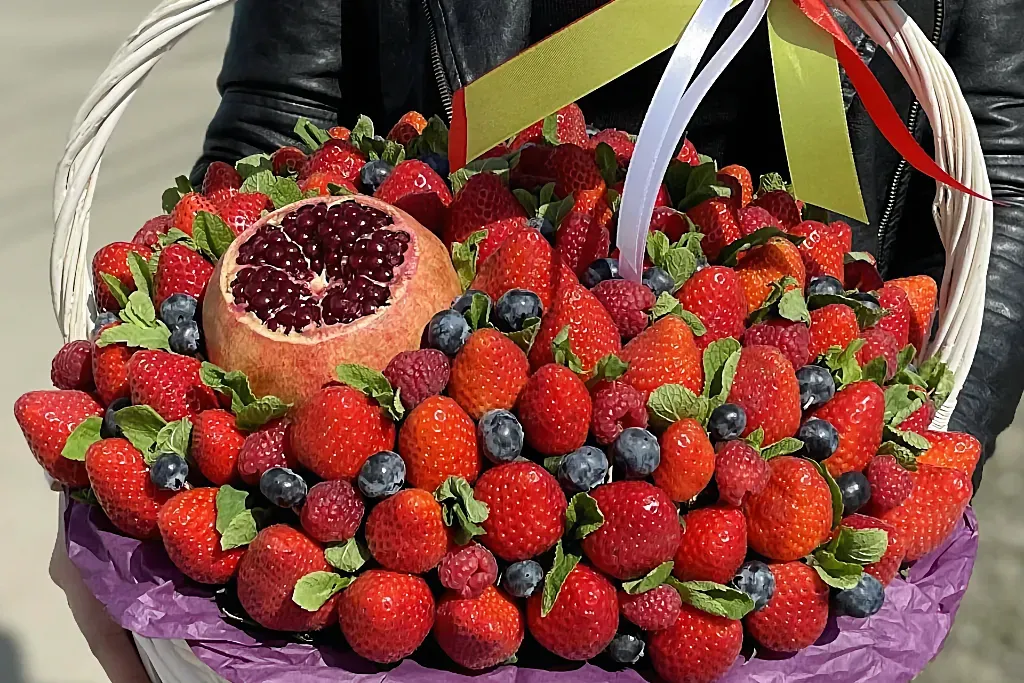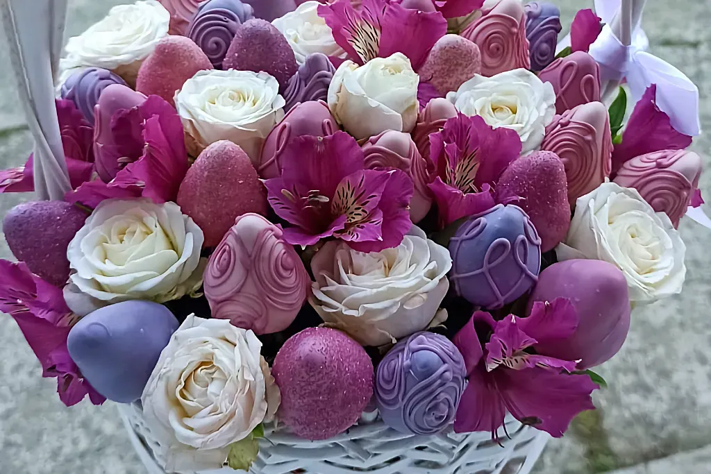 Заказывая клубнику в шоколаде с цветами в корзине в FlowLove, Вы получаете: