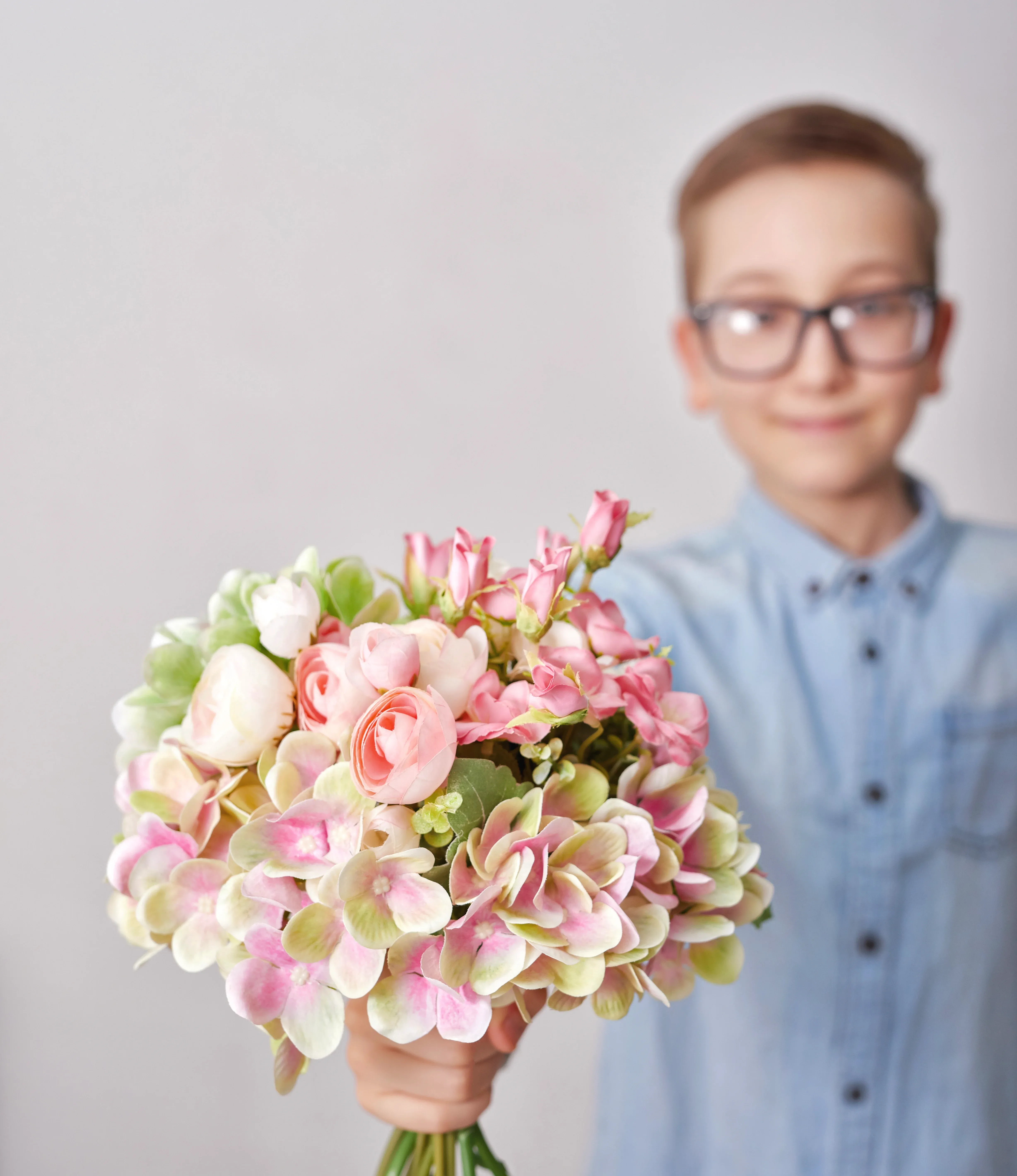 - Выбирать и покупать цветы нужно прежде всего исходя из возраста учителя. Молодые преподаватели часто предпочитают нераспространенные и редкие виды цветов. В этом случае могут отлично подойти композиции из гортензий, орхидей, альстромерий, гиацинт, ирисов и эустом. Что касается цветовой палитры букета, то лучше выбирать из светлых и нежных тонов: белый, кремовый, розовый, голубой, желтый и алый.
